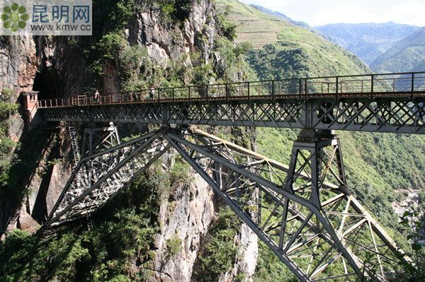 位于滇越鐵路屏邊縣境內(nèi),是由法國女工程師鮑爾—波丁設(shè)計,上承網(wǎng)格式桁梁與人字形拱架組合一體,建筑莊嚴肅穆,氣勢磅礴,仿佛一個頂天立地的巨人,展開雙臂,推開雙嶺,叉開雙腿,飛跨于兩山絕壁之上。其建造結(jié)構(gòu)理念與法國埃菲爾鐵塔同出一轍,是世界鐵路橋梁史上的杰作。