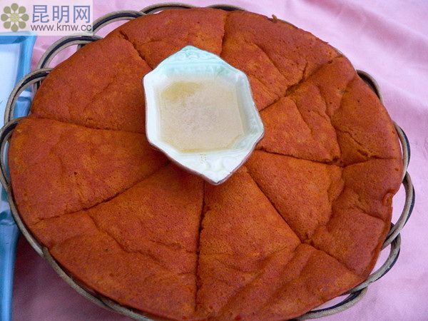 采用三塘、向陽等氣候冷涼的高寒山區蕎麥,磨成面,加上適量的清水,拌勻后煎成餅,即為蕎粑粑。粑粑有苦蕎和甜蕎兩種口味,甜蕎味淡不苦,苦蕎粑粑味道微苦,但清涼可口,更有涼血降火,清涼潤腸的功效。蘸上瀘西特有的阿廬蜜,又香、又甜,集營養和美味于一體,令人回味無窮。