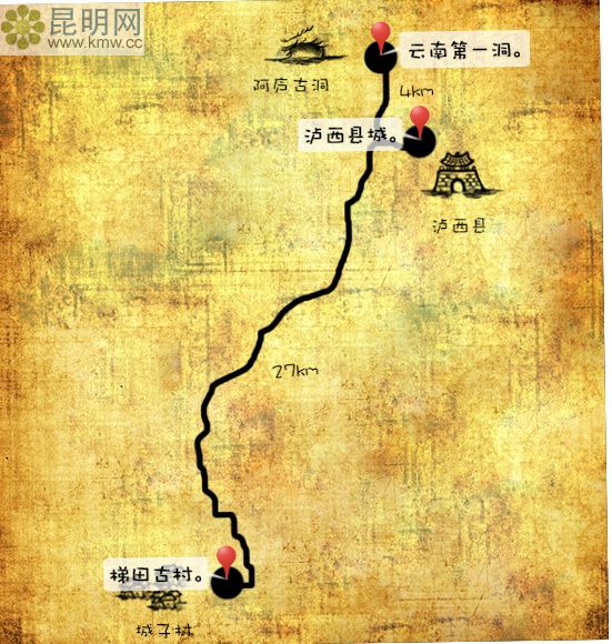DAY1: 瀘西縣—城子古村(27公里,1小時)—阿廬古洞(29公里,1小時)—瀘西縣(4公里,10分鐘)
