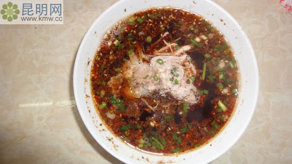 也叫長(zhǎng)壽面,到巍山必吃。是用鹽水和優(yōu)質(zhì)面粉和成面團(tuán),再搓成小拇指般粗細(xì)面條并盤(pán)起,不斷拉細(xì)下鍋。煮熟后,加骨頭湯、當(dāng)?shù)靥厣骐印⒉莨妗⑨u油、辣椒面等佐料,不但味美,而且還有吉祥之意。
