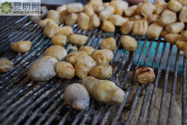 用大板井水做的“西門”豆腐,其質鮮嫩口感香酥。烘燒后豆腐充氣膨脹,即可蘸以配好的甜咸醬油、辣椒面、蒜泥、味精等佐料食用。
