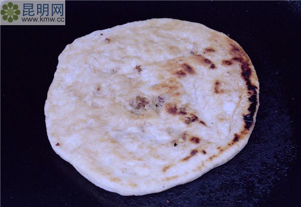 用麗江出產(chǎn)的精細麥面在大理石石板上抹搽植物油,再搟成一塊塊薄片,抹上化油,撒上火腿末或白糖后卷成圓筒狀,兩頭搭攏按扁,中間包入芝麻、核桃仁等佐料,再以平底鍋文火烤熟。