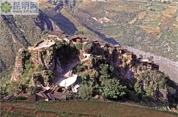 懸崖上的石頭城寶山石頭城位于麗江城北110公里的金沙江峽谷中,因百余戶人家聚居在一座獨立的蘑菇狀巨石之上而得名。從云杉坪山腳的黑白水河出發(fā),沿盤山公路向北走,前行約100公里,就到了寶山鄉(xiāng)府所在地。在此下車,稍作休息,便要開始步行,沿山間小道前行約3小時,便可看到寶山石頭城。收拾一顆心,等著為建于明代巧奪天工的石城驚嘆吧。