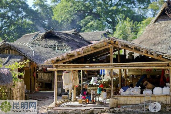 原生態(tài)佤族茅草屋民居,是桿欄式竹木樓。