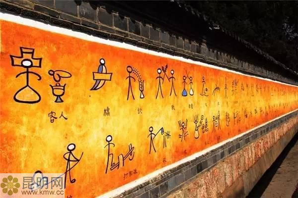 畫(huà)在墻上的東巴象形文字(來(lái)源:“潘潘龍”的新浪博客)