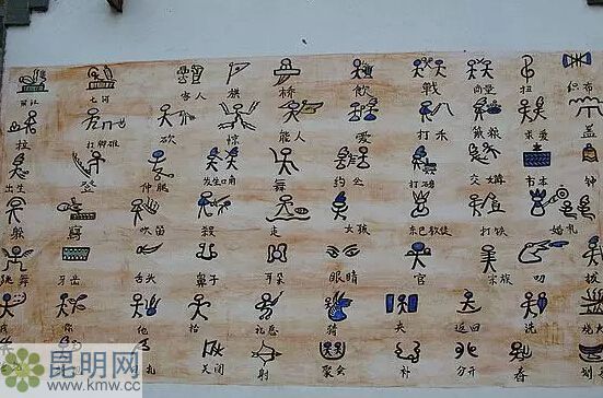 東巴文是一種原始的圖畫象形文字,主要為東巴教徒傳授使用,書寫東巴經(jīng)文,故稱東巴文。納西話叫“思究魯究”,意為“木跡石跡”,見木畫木,見石畫石。包含兩層意思:一是“留記在木頭石頭上的跡印”;二是“木石之痕跡”,可引申為見木畫木,見石畫石。因這種文字大多只由東巴掌握,用來(lái)撰寫經(jīng)典,所以又稱它為“東巴特額”,意即東巴文。這種文字是一種兼?zhèn)浔硪夂捅硪舫煞值膱D畫象形文字,其形態(tài)十分原始,甚至比甲骨文的形態(tài)還要原始,屬于文字起源的早期形態(tài),亦能完整紀(jì)錄典藏。