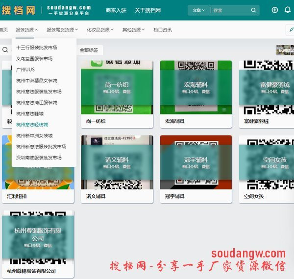 當然,如果想足不出戶的就完成以上這些工作,也是有辦法的。 專業的人做專業的事,比如搜檔網,就是一個搜集和整理了廣州杭州深圳遼寧常熟數以萬家的服裝批發檔口老板微信的網站。
